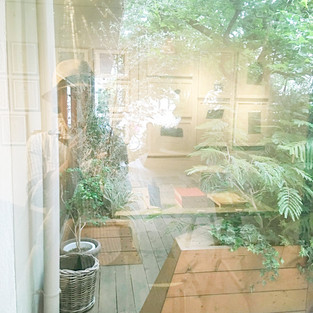真っ白い壁に、緑の葉が生い茂げり、2階まで広がった枝の木が正面を覆いつくしているシンプルな建物が目に入ってきました。